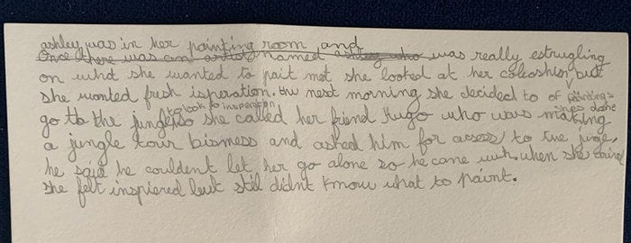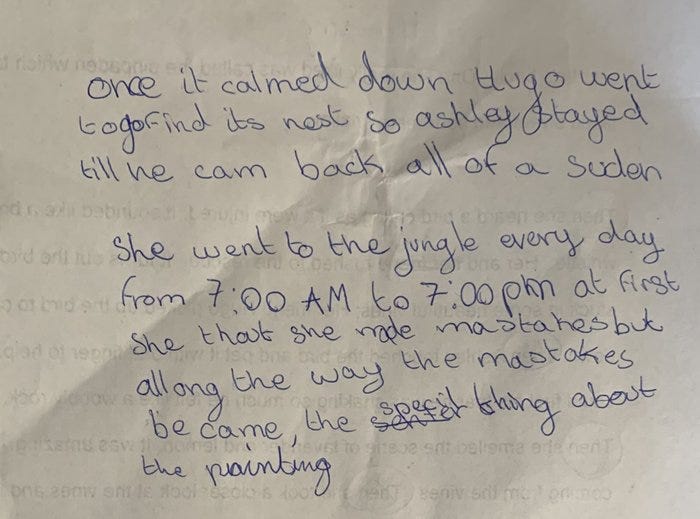 Before our 3rd session, I typed up Bellamy's story so she could see it as a whole. Seeing their work typed also makes kids feel professional.