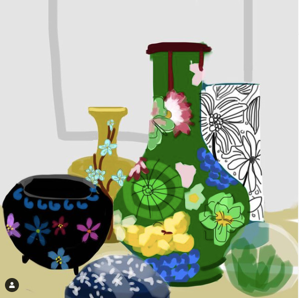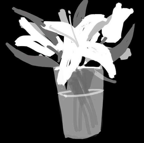 At the same time, I felt I had to respond to what was happening in the world. Furious over the senseless murders of George Floyd, Elijah Jovan McClain, and Breonna Taylor, I used the immediacy of the phone and digital drawings to create a series of black and white flowers in memoriam. In the Brushes app, I was able to duplicate the drawings, erase the black, and fill in the white to create identically opposite images. The flower was the same, but when it was white on a black background, it was worlds apart from the reverse image of the black flower on a white background.